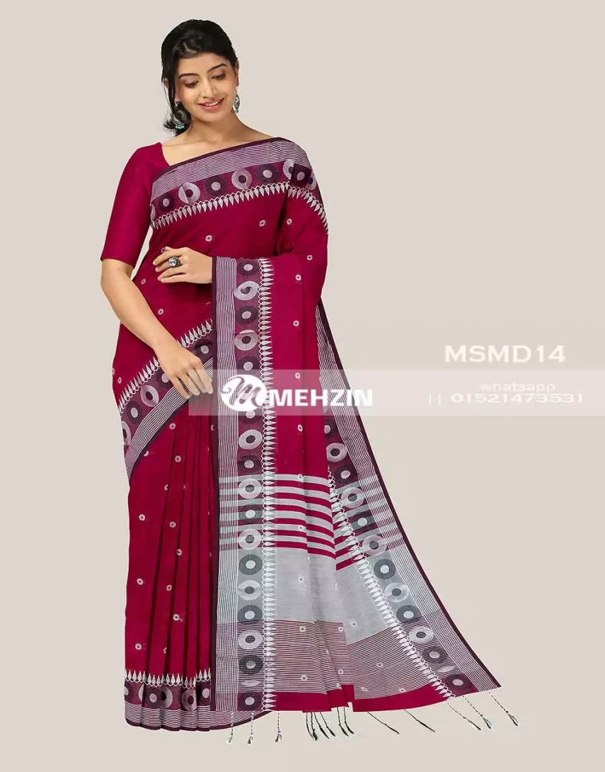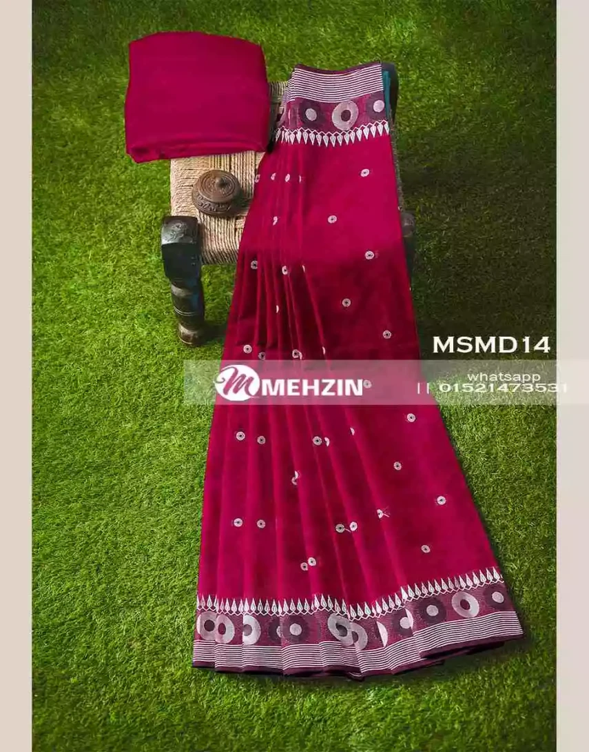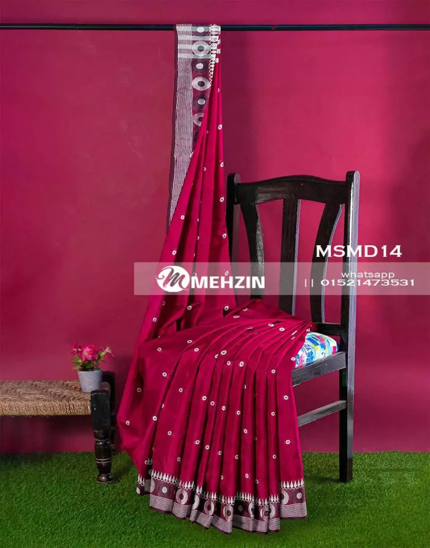| ডিজাইন | আকর্ষণীয় ডিজাইনে বুটি মাসলাইস শাড়ি। |